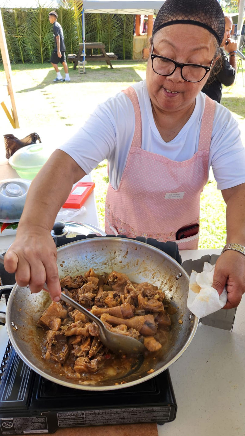 Carol Manglona tends her “estafao pika” (spicy stew) on her way to winning 1st place at the 22nd Annual Tinian Hot Pepper Festival on February 14, 2026, in Tinian, Marianas.