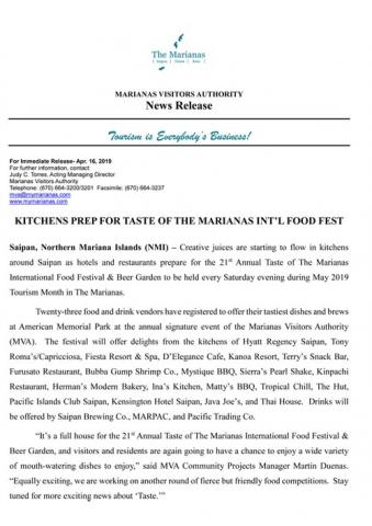The 21st Annual Taste of the Marianas International Food Festival and Beer Garden will kick off on May 4, and continue every Saturday in May. This signature event has become a must-see for all visitors and residents and will feature various local and international cuisine, live entertainment, nightly competitions, and more. A top chef competition will feature chefs from all major resort hotels in The Marianas and the winner will be crowned the “Top Chef of The Marianas.” Join one of the largest events in The Marianas and spread the word!